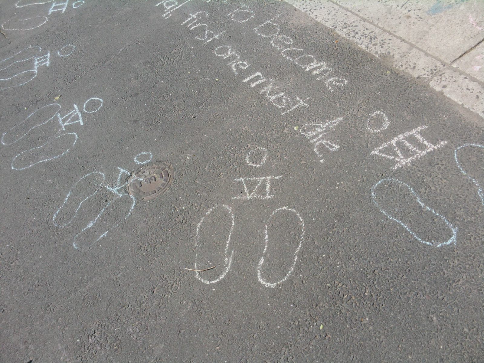 Here’s the real reason I took some pictures. New Haven is home to Yale, which in itself has enough freemasonry/Skull and Bones/Secret Society cultism to keep any person busy. Walking by, I happened to spot some chalkings that seemed interesting enough.