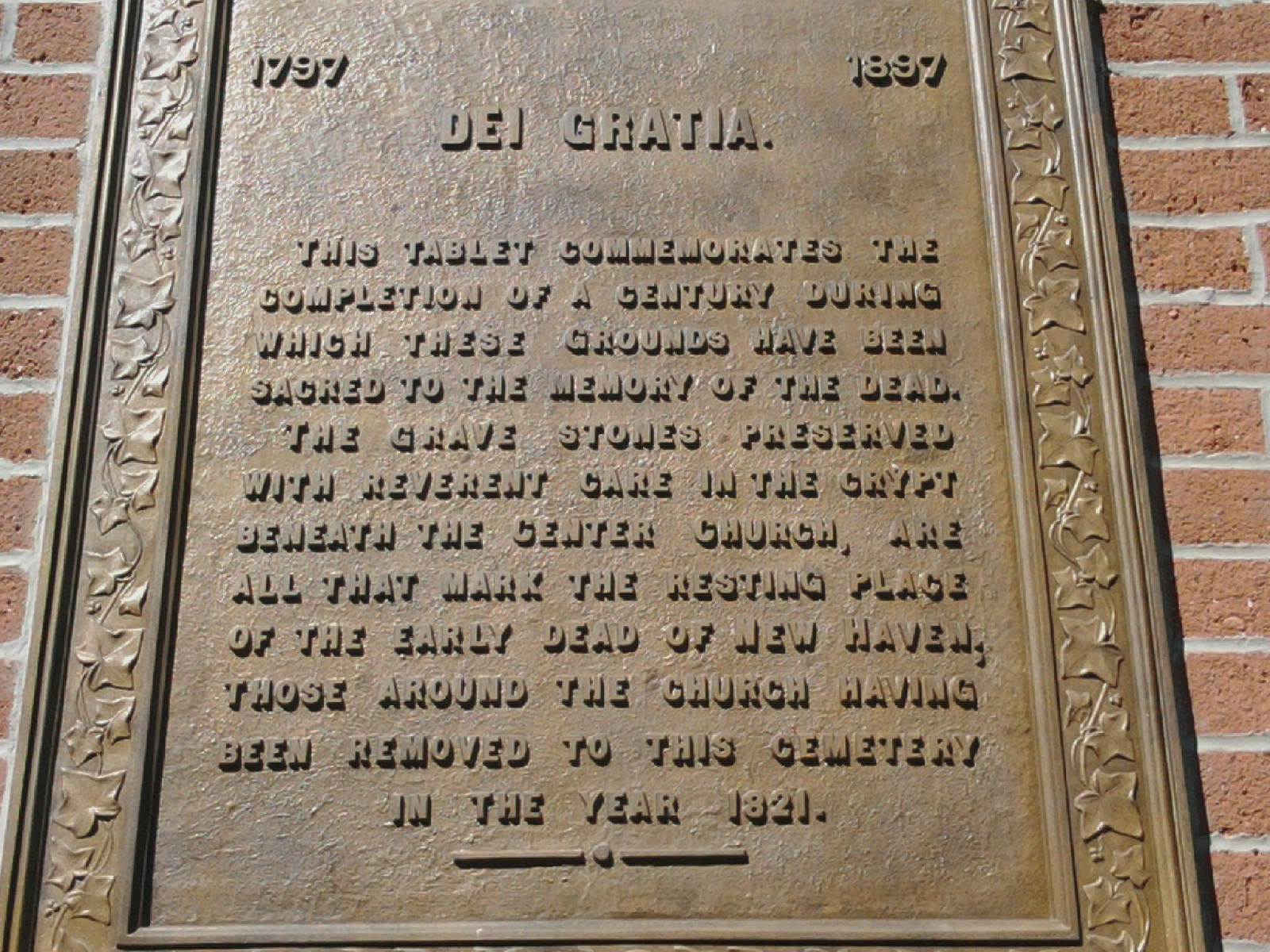At the Grove Street Cemetery, you’ll find some plaques. The first one isn’t all that special, more or less establishing that this graveyard is important to the town. There are some other gravesites out on the edge, more towards Westville, East and West Haven. If you want your body buried right in New Haven, Grove Street is where you want to go.