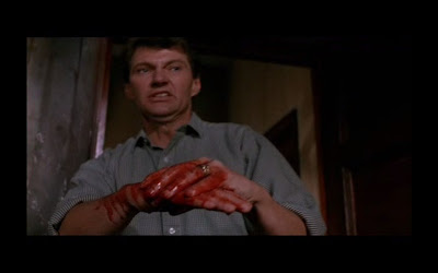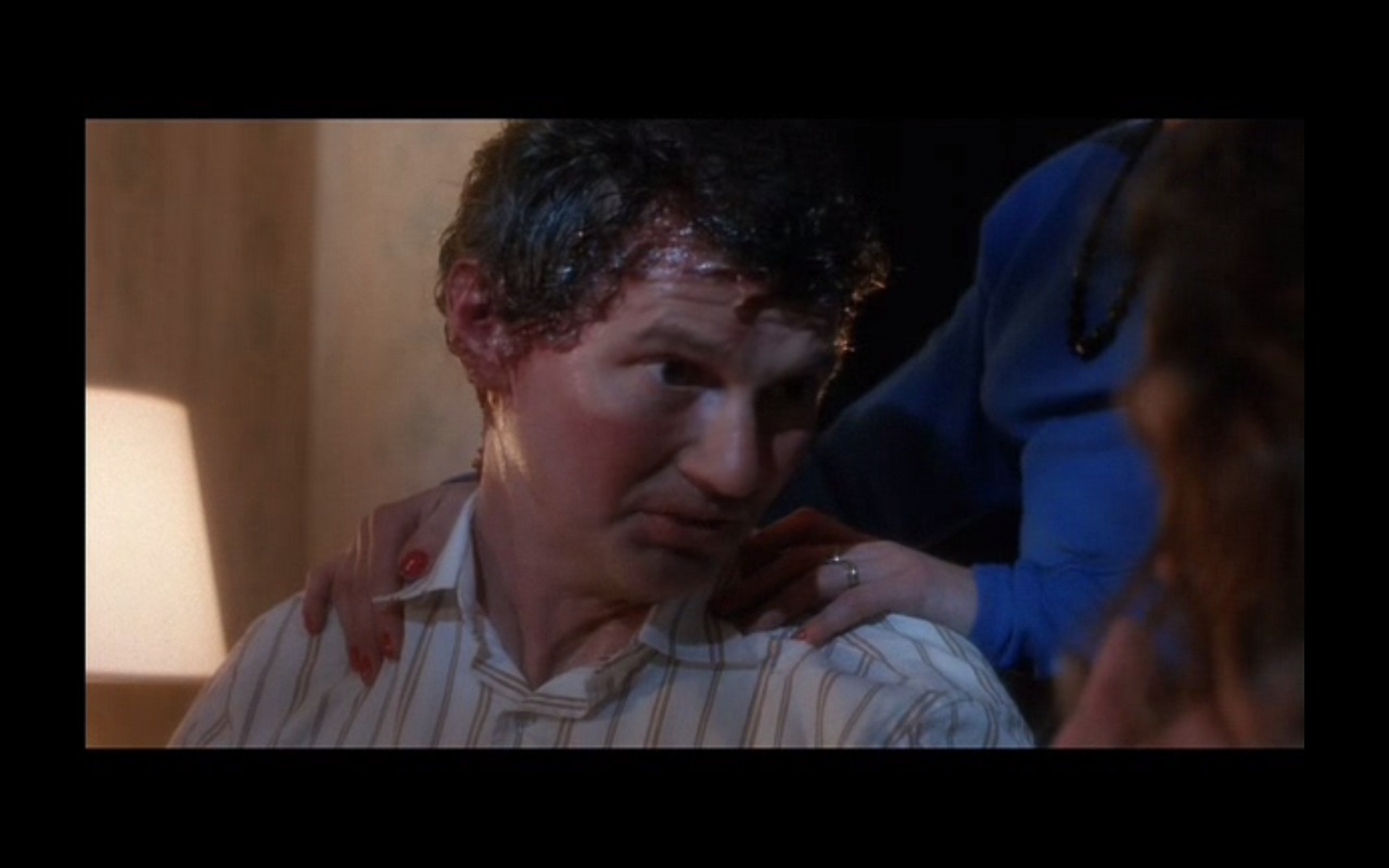 Through the power of FLASHBACK, we see Julia and Frank having a bit of an affair, put against scenes of DANGEROUS BED MOVING. Larry screws up his hand and the corn syrup starts to flow like fake blood!