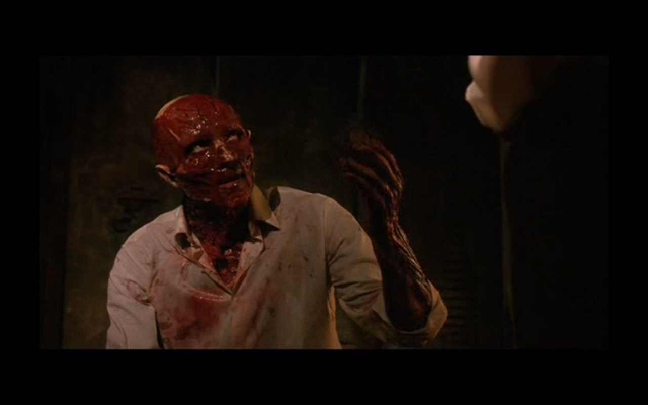 At this point, Frank looks likes a skinless Ben Kingsley. He tells about how he came to be this quivering mass of blood and guts, all through his magic little box.