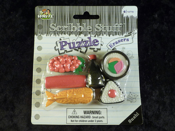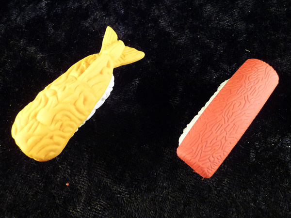 Here’s a closeup of the sushi erasers showing their surface textures.