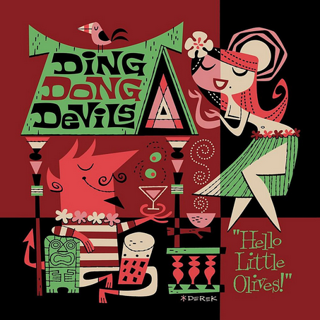 The Ding Dong Devils are back! While the songs are all new, their unique brand of playful exotica/surfabilly/fuzzy rock is still the same. Hello Little Olives is loaded with musical shout-outs, which ranges from Don Ho to GG Allin!
