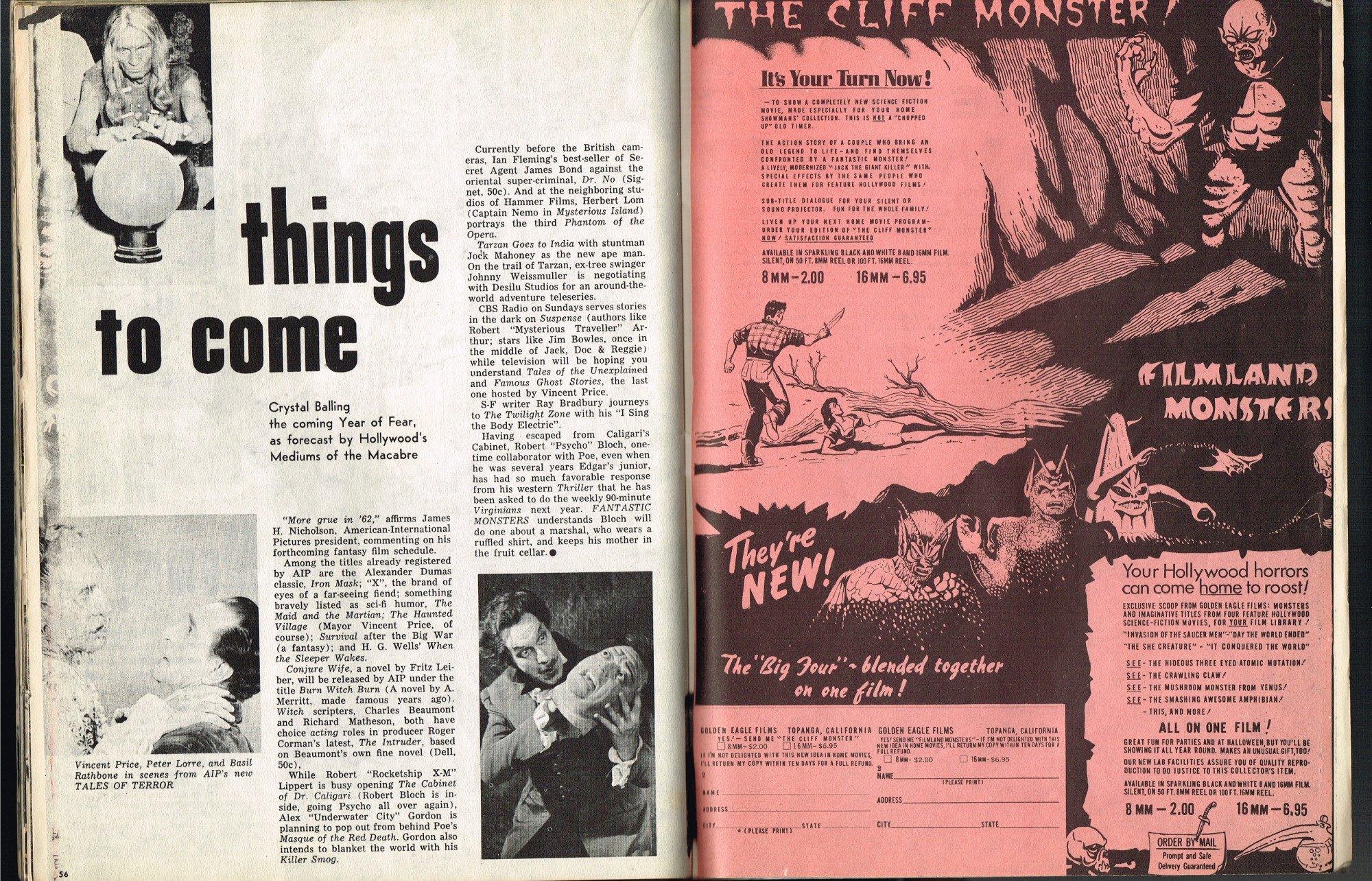 Laying out this predator and perpetrator landscape across the decades provides a unique view of how it (and its promotional artwork) had changed over time. One can sense the earnest exuberance of the early horrors (1920s to 1930s) and how that gave way to the more homogenized terrors of the 1940s (with some exceptions, of course). The 1950s followed with their more rational and scientific monsters, but then a complete u-turn takes place in the 1960s as George Romero and Alfred Hitchcock bring the horror closer and make it more real.